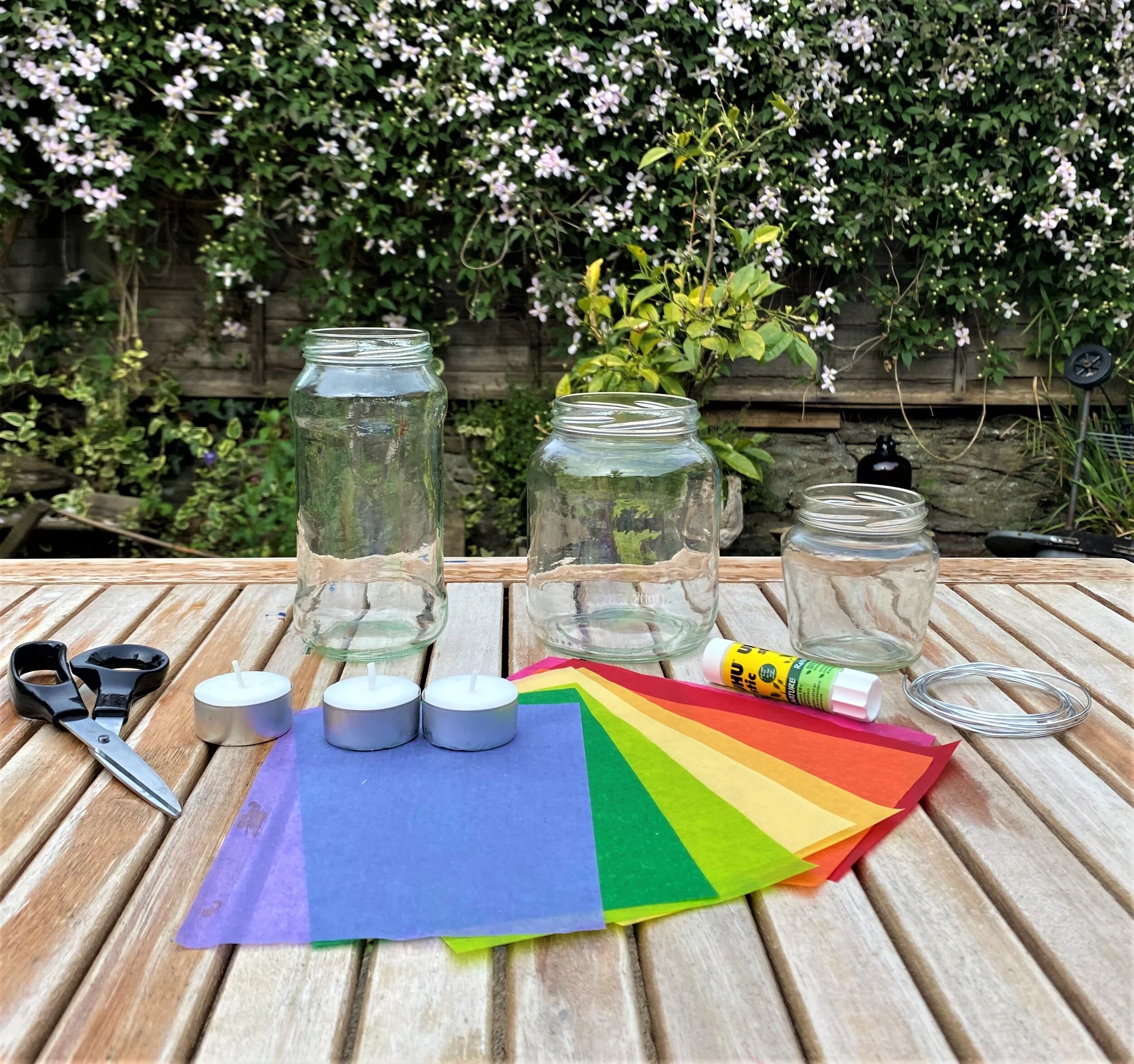 art supplies for a lantern-making craft project for kids