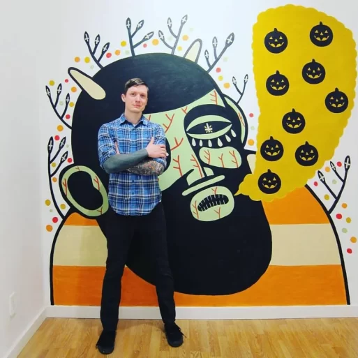 First inspired by the oeuvre of Jean-Michel Basquiat, the tattooed Pittsburgh native depicts death as colorful and graphic because his work is really about life — death being inseparable from it — and a catalyst to live it fully.